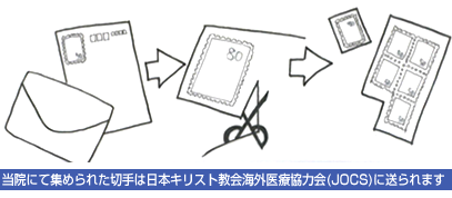 当院では、ご家庭で不要になった使用済みの切手を回収しています。
